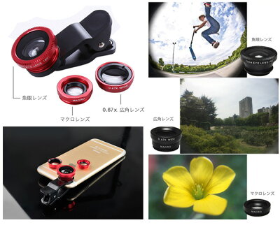 [素材] プラスチック [サイズ] ・0.67x広角レンズ ・魚眼レンズ ・マクロレンズ ・レンズキャップ ・クリップ ・収納ポーチ [備考]サイズは、実寸を測っているため多少の誤差はございます。
