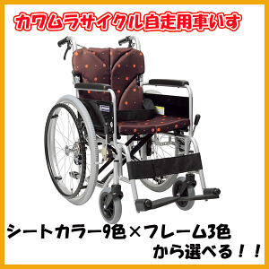 ・標準機能:折りたたみ式(幅33cm)、背&座シート張り調整、エアータイヤ ●サイズ/全幅59・61・63×全長98×全高86.5cm、座面:幅38・40・42×奥行40cm、前座高:43cm ●車輪サイズ/前輪7×後輪22インチ ●重さ/14.7kg ●座幅選択/38・40・42cm ●材質/アルミ ●最大使用者体重/100kg ●シートカラー/No.91シアンレザー(ビニールレザー)、No.100ドットブラウン(ポリエステル)、No.102ピーコックブルー(ポリエステル)、A今チェック(ポリエステル)、A9緑(ポリエステル)、A10赤チェック(ポリエステル)、A11紫チェック(ポリエステル)、No.71オータムフラワー(ポリエステル)、No.88エコブラック(ビニールレザー) ●フレームカラー/レッド、ゴールド、シルバー ●品番/座幅38cm:BM22-38SB-M、座幅40cm:BM22-40SB-M・座幅42cm:BM22-42SB-M ●メーカー/カワムラサイクル